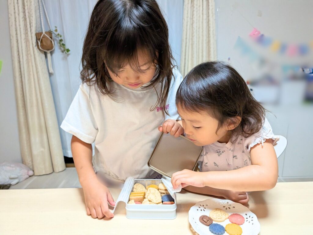 我が家では7歳・3歳・1歳の子どもたちと一緒に、クッキー缶を実食しました!