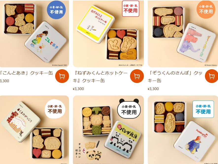 店頭の場合、欲しい絵本クッキー缶が売り切れになってしまっている可能性や売っているお店が遠いという事があります。