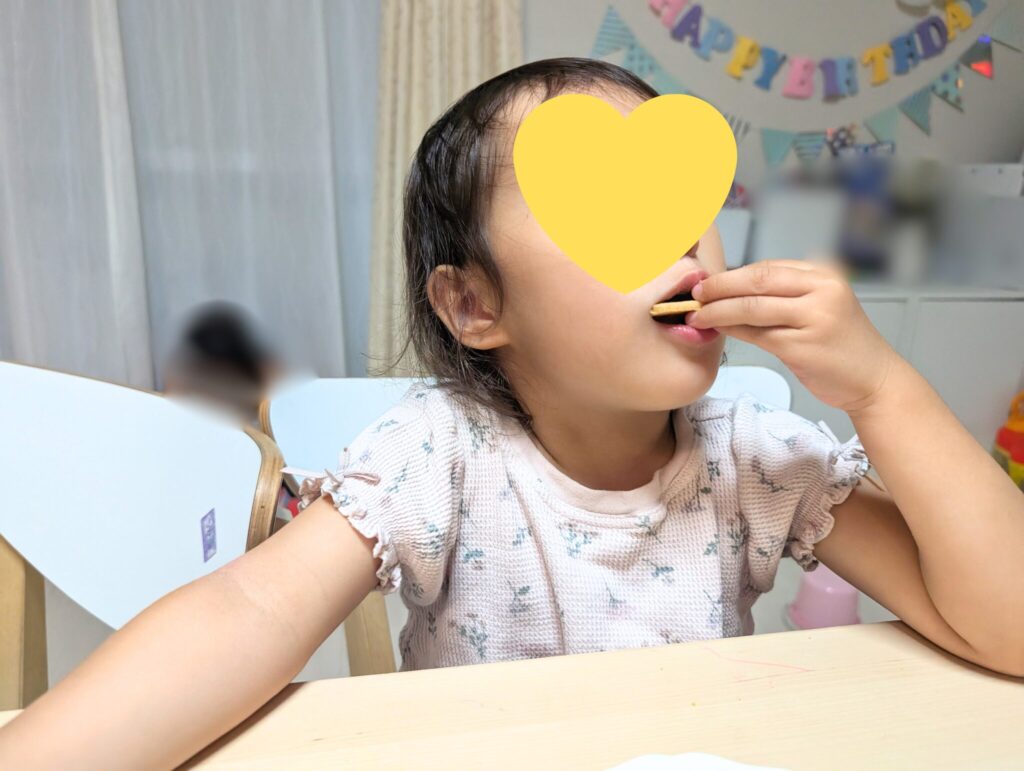 口に入れるとほろっとほどける食感に夢中で、自然な甘さも気に入った様子です。