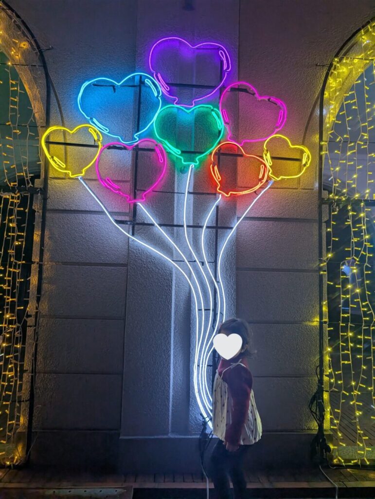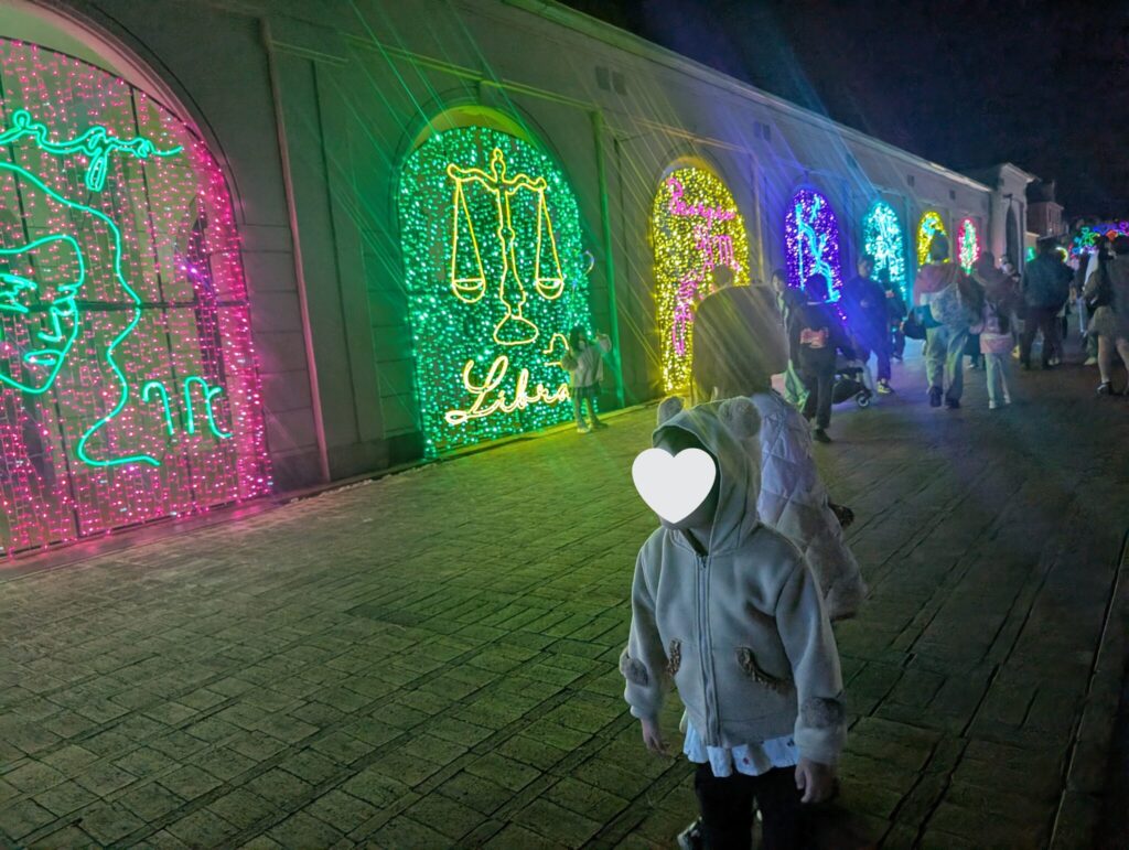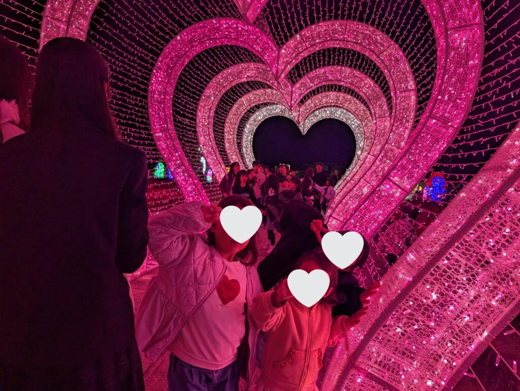 我が家の女子たちは「LOVEトンネル」がお気に入りで、ハート型の光が重なり合い、写真映え間違いなしのロマンチックなスポットとなっています。