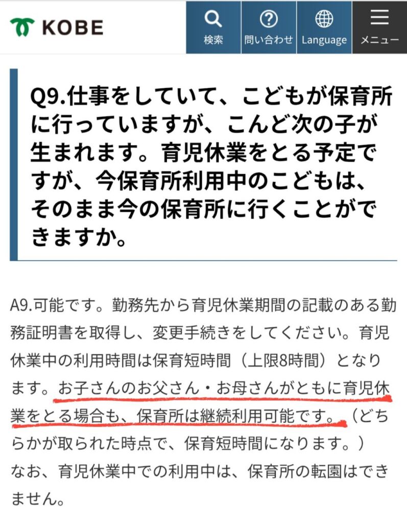お隣の市の保育園でも夫婦で育休をとっても、上の子を保育園に預けることができるという話でした。